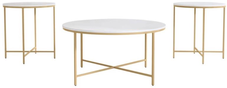 The Coaster® Ellison 3-Piece White Occasional Table Set features clean white tops with elegant gold bases. This stylish set combines a modern, minimalist design with a touch of luxury, making it a perfect addition to enhance any contemporary living space.Read More