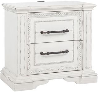Charming and functional, this two-drawer nightstand blends classic design with thoughtful details. A vintage white finish softens the ornate carvings and sculpted base, while antique bronze handles bring graceful contrast. Dual USB ports are hidden at the back for modern convenience, while felt-lined drawers offer protected storage.Read More