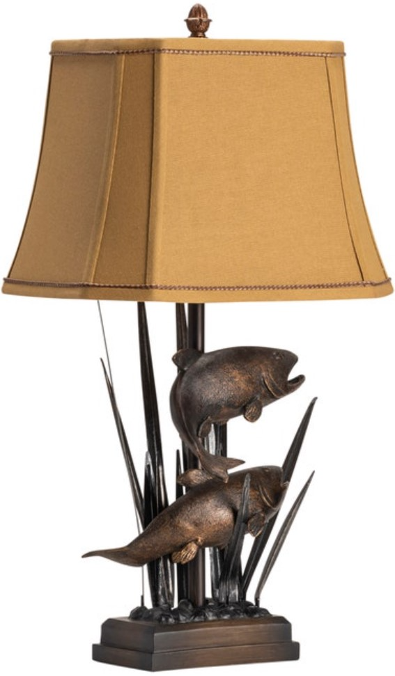Dancing fish encircle the base of the Crestview Collection Upstream Table Lamp, leaping through reeds with impressive detail. The cast resin is polished in a bronze finish, adding a glow to the action, and the lamp shade is a gentle tan tone to add warmth to the illumination.Read More