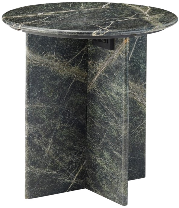 This round end table brings sculptural simplicity to any space with its polished marble surface in black, enriched by green undertones and soft cream veining. A bold cross-panel base grounds the design in modern style while keeping the silhouette clean and balanced.Read More